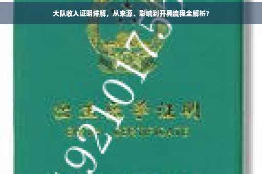 摘要:本文将详细介绍大队收入证明的来源、影响以及如何开具。从收入证明的来源开始,了解其背后的经济基础和来源渠道。探讨这份证明对个人生活、财务状况及未来规划的影响。指导读者如何正确开具大队收入证明,包括所需材料和步骤等。旨在帮助读者更好地理解和利用大队收入证明。
