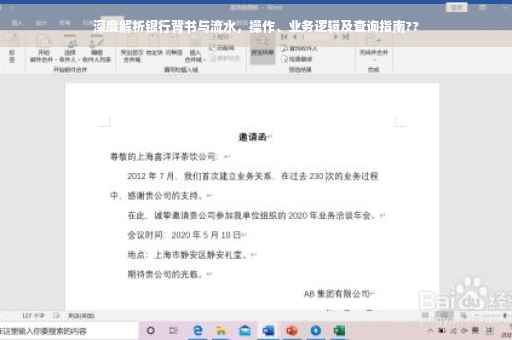 摘要:,,本文将深度解析银行背书与流水的操作与业务逻辑。银行背书是银行业务中的重要环节,涉及资金流转和信用保障。流水则是反映银行账户交易往来的重要依据。本文将介绍如何查询银行流水,并探讨银行背书与流水的关联,帮助读者更好地理解银行业务操作。