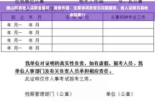 摘要:本文将详细介绍佛山购房收入证明的准备过程,包括注意事项和常见问题解答。读者将了解如何准备收入证明,以及在开具过程中需要注意的关键点,如证明的来源和真实性。本文还将解答关于购房收入证明的常见问题,帮助购房者顺利办理购房手续。