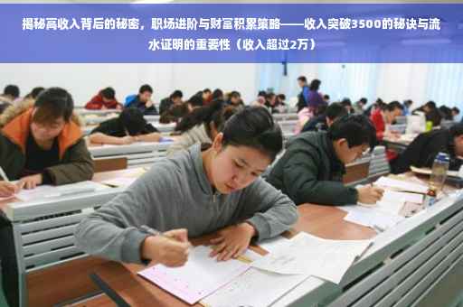 揭秘收入超过3500元的秘密,职场进阶与财富积累的关键在于不断提升自身能力和适应市场需求。收入证明超过两万元需要流水记录作为证据。本文将分享职场成功人士的秘诀,包括技能提升、人际关系建设以及理财策略等方面。通过阅读本文,读者将了解如何通过职场进阶实现财富积累,掌握收入超过目标的关键步骤。