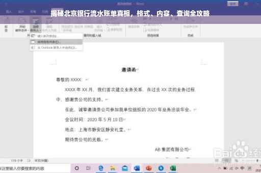 随着金融行业的快速发展,越来越多的人开始关注个人财务管理,作为个人财务记录的重要部分,银行流水账单成为了大家关注的焦点,本文将详细介绍北京银行流水账单的格式、内容以及如何查询,帮助大家更好地了解银行流水账单的真面目。