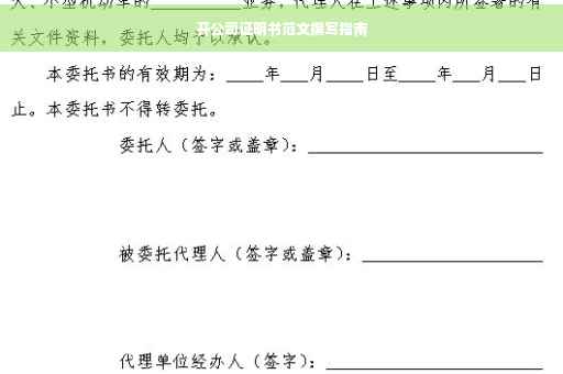 摘要:本文介绍了如何撰写开公司证明书范文,包括需要注意的格式、内容以及写作要点。文章指出,开公司证明书应包含公司名称、成立时间、注册资本、业务范围等重要信息,并且要求格式规范、语言简洁明了。读者可以通过参考本文提供的范文,了解如何正确书写开公司证明书,以便在需要时能够迅速准确地完成相关手续。