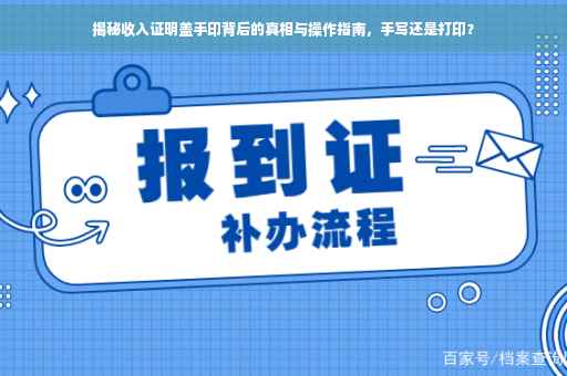 在现代社会,随着就业市场的日益繁荣,收入证明成为了人们生活中不可或缺的一部分,有时,在办理贷款、信用卡或其他重要手续时,我们可能需要提供收入证明并盖手印,收入证明盖手印究竟意味着什么?本文将为您揭示背后的真相,并提供操作指南,助您顺利处理相关事宜。