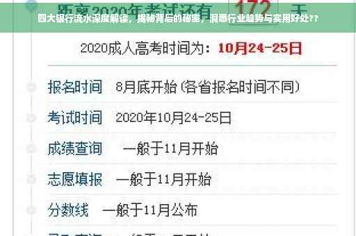 随着金融市场的繁荣和发展,银行流水作为反映个人和企业经济活动的重要窗口,逐渐引起了广泛的关注,本文将深入探讨中国四大银行的银行流水,揭示其背后的秘密,并洞察行业未来的发展趋势。