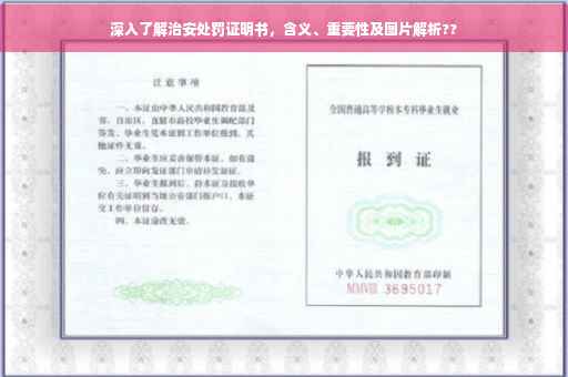摘要:本文将详细介绍治安处罚证明书的概念、背后含义及其重要性。通过解析该证明书的内容,让读者了解其在实际治安管理和法律执行中的关键作用。还将提供治安处罚证明书的图片,以便更直观地了解其具体形式。本文旨在帮助公众理解治安处罚证明书的重要性,并引导大家正确使用和对待这一法律文件。