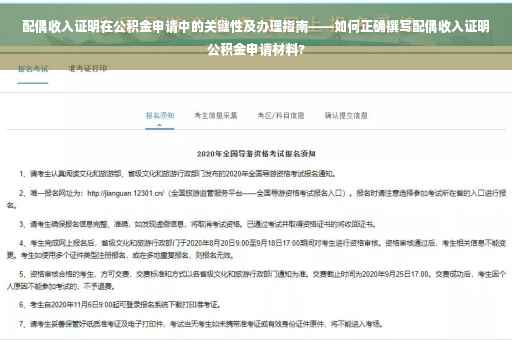 随着社会的进步和经济的发展,公积金作为一种重要的社会保障制度,为广大职工提供了有力的住房保障,在申请公积金贷款时,配偶收入证明成为了不可或缺的一环,本文将详细介绍配偶收入证明在公积金申请过程中的重要性,以及办理配偶收入证明的流程和注意事项。