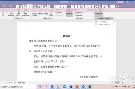 摘要:本文将详细介绍湛江购房收入证明的获取及有效利用方法。包括如何准备相关材料,选择正规渠道开具收入证明,以及如何利用这份证明提高购房成功率。本文还将探讨收入证明在购房过程中的重要性,帮助购房者顺利获取并有效利用购房收入证明,实现购房梦想。