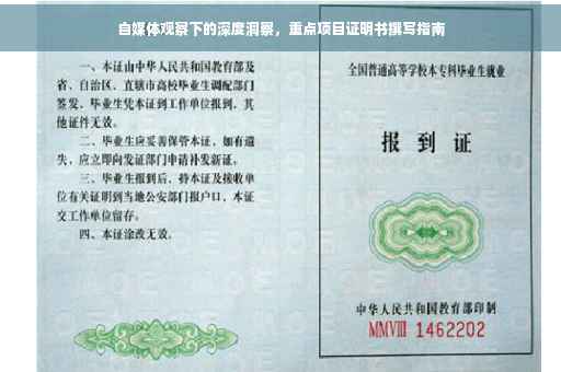摘要:本文介绍了自媒体观察下的深度洞察,旨在探讨如何撰写重点项目证明书。文章指出,自媒体时代为我们提供了丰富的信息和数据,通过观察和分析这些数据,我们可以获得更深入、更全面的认识。本文详细阐述了撰写重点项目证明书的方法和步骤,包括确定项目重要性、分析项目进展、总结成果等方面。通过本文的指导,读者可以更好地掌握如何撰写一份高质量的重点项目证明书。