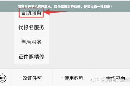 除了流水查询功能外,农商银行手机银行还提供了其他丰富的金融服务功能,如账户查询、转账汇款、投资理财、信用卡服务等,您可以根据自己的需求,随时使用手机银行办理各类金融业务,在使用过程中,如有任何疑问,请随时联系农商银行客服,农商银行手机银行为您提供了便捷、高效的金融服务体验,让您的生活更加美好。