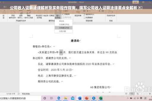 公司收入证明法律是企业在实际运营中必须关注的重要问题,本文旨在为企业提供有关公司收入证明法律的解析及实务操作指南,希望企业在实际操作中能够遵循相关法律法规,确保收入证明的真实性和准确性,加强与劳动者的沟通,有效防范法律风险,本文仅供参考,如有疑问或需求,请咨询专业法律人士。