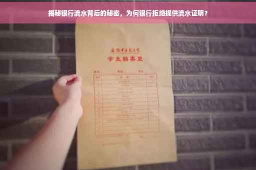 了解为何银行不给开银行流水的原因有助于我们更好地理解银行的运营和金融市场的规则,作为客户,我们应积极了解相关政策和规定,保护自己的权益和安全,希望本文能为您揭开银行流水的秘密,助您更好地管理个人财务。
