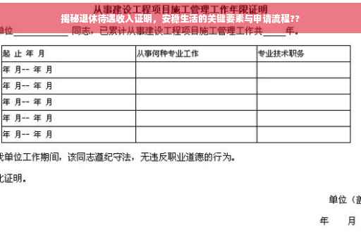 摘要:退休待遇收入证明是展示个人退休生活安稳的重要证明,但其背后涉及的内容常被忽视。本文将介绍如何开具退休待遇收入证明,并探讨其背后的含义和重要性。通过了解这一过程,可以更好地规划自己的退休生活,确保享受应有的待遇和保障。