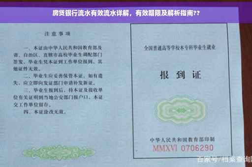 摘要:本文探讨了房贷银行流水中的有效流水解析及其有效期。有效流水指的是能够证明个人收入稳定性的银行流水记录,通常包括工资、奖金、津贴等稳定收入来源。对于房贷申请,银行流水的有效流水时间一般为近半年至一年,不同银行可能会有所差异。在准备房贷申请时,借款人应提前了解银行要求并提供符合要求的银行流水记录,以确保成功获得贷款批准。