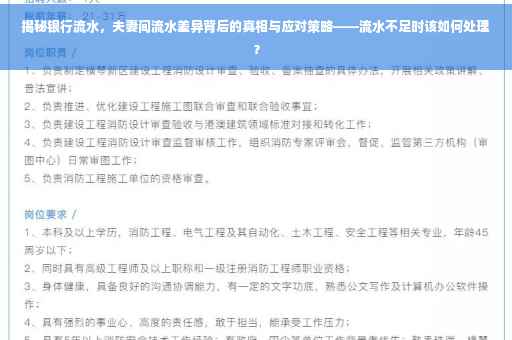 摘要:,,本文探讨了银行流水的重要性以及夫妻间没有共同流水背后的真相。揭示了银行流水不够的共同原因及应对策略。针对这一问题,提出了加强财务管理、寻求贷款机构支持等解决方案,帮助夫妻解决银行流水不足的问题。也强调了夫妻间沟通和相互信任的重要性,以共同应对财务挑战。