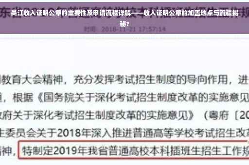 本文旨在全面介绍吴江收入证明公章的作用、申请流程以及注意事项,希望读者能更好地了解和运用这一重要文件,为个人的金融交易和生活带来便利,在申请过程中,请务必注意上述提到的要点,确保申请顺利。
