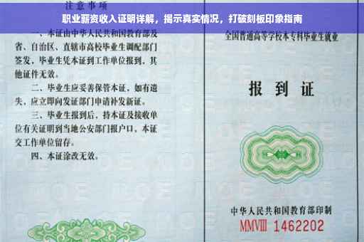 摘要:职业薪资收入证明是一份重要的文件,旨在揭示真实的职业薪资情况,打破人们对薪资的刻板印象。撰写时,应包含个人基础信息、工作岗位、薪资细节等内容。语言简洁明了,避免冗余,重点明确。此举有助于公众了解各行业的真实薪资水平,促进就业市场的透明和公正。