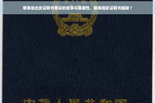 摘要:慈善会出资证明书是证明个人或组织参与慈善捐款的重要文件,其背后蕴含着无数感人的故事。这份证明书不仅证明了捐款的真实性和数额,更是对慈善行为的一种认可和嘉奖。通过慈善捐款证明书,我们可以更深入地了解慈善事业的意义和价值,感受到社会大家庭的温暖和爱心。