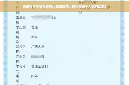 随着移动互联网的普及,我们的生活越来越离不开手机,为了更好地满足广大用户的金融需求,天府银行推出了手机银行服务,通过手机银行,用户可以随时随地查询账户余额、交易明细、流水等信息,轻松掌握个人财务动态,本文将详细介绍如何在天府银行手机银行上查询流水,帮助您更好地管理个人财务。