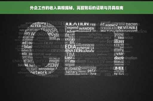 随着全球化的浪潮,外企成为众多年轻人的职业梦想,高薪酬和优越的福利待遇是吸引大家的两大重要因素,但外企工作的真实收入状况究竟如何?本文将带您深入了解外企收入证明背后的真相。