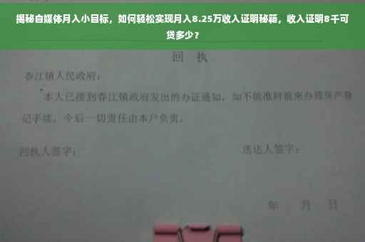 揭秘自媒体月入小目标秘籍,轻松实现月入8.25万收入证明。想知道如何提升自媒体收入吗?本文为你揭示自媒体成功秘诀,让你轻松实现高收入梦想。探讨收入证明8000能申请多少贷款,助你更全面了解个人财务规划。跟随秘籍指引,开启自媒体财富大门!
