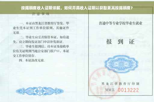 随着房价的不断上涨,越来越多的人选择通过按揭贷款购买房屋,在申请按揭贷款的过程中,收入证明成为了至关重要的一环,银行和其他金融机构通过收入证明来评估申请人的还款能力,从而决定给予的贷款额度,本文将深入探讨按揭贷款收入证明的相关知识和申请过程中的注意事项,帮助购房者顺利获得理想的按揭额度。
