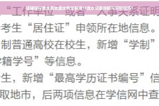 在当今社会,随着金融行业的快速发展,越来越多的人开始关注个人财务管理和理财规划,在银行办理贷款、信用卡等金融业务时,银行流水作为评估个人信用和还款能力的重要依据,其有效性备受关注,银行流水怎样才算有效流水呢?本文将对此进行详细解析。