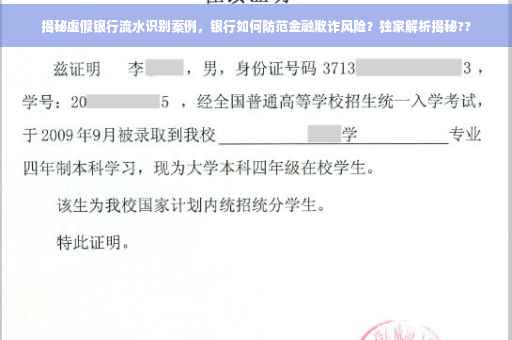 摘要:本文分析了银行识别虚假银行流水的案例,探讨了如何防范金融欺诈风险。通过案例分析,揭示了虚假银行流水的特点和识别方法,包括关注异常交易、核实交易对手信息等。提醒广大市民提高警惕,增强金融风险意识,防范金融欺诈风险。本文旨在帮助公众了解银行风控措施,共同维护金融安全。
