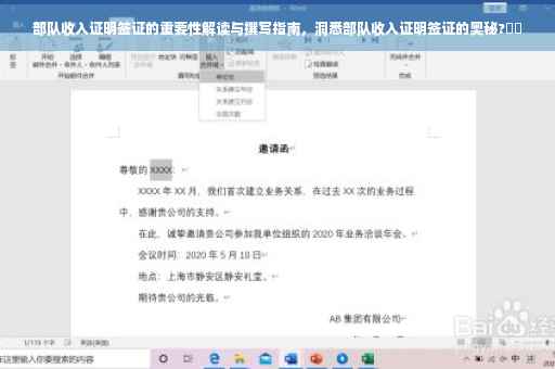 随着全球化进程的加速,军人因公或因私出国的情况逐渐增多,部队收入证明签证的重要性也日益凸显,本文将详细介绍部队收入证明签证的作用、办理流程、注意事项及相关细节,以帮助广大官兵顺利办理出国手续,更好地了解和运用部队收入证明签证。
