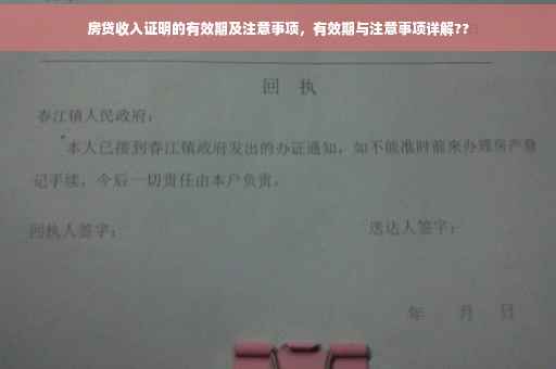 房贷收入证明是银行审批贷款时的重要参考依据,对于准备申请房贷的朋友来说,了解房贷收入证明的有效期及相关注意事项十分必要,本文将详细解读房贷收入证明的相关内容,助您顺利办理房贷手续。