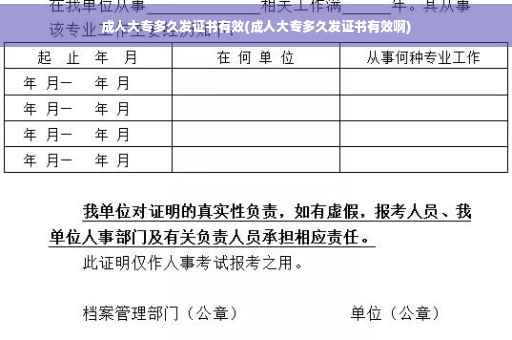 大家好,关于成人大专多久发证书有效的问题,于是小编就整理了4个相关介绍成人大专多久发证书有效的解答,让我们一起看看吧。