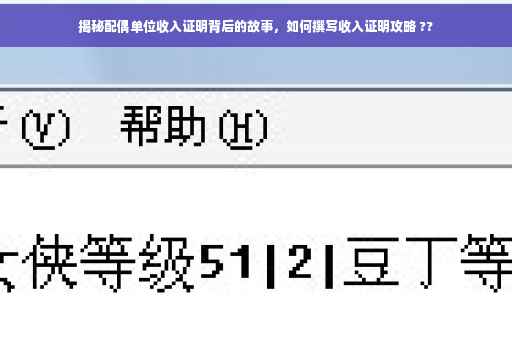 在当今社会,随着经济的发展和就业竞争的加剧,越来越多的人开始关注身边的伴侣收入情况,而在这个过程中,一份配偶单位的收入证明成为了验证其收入水平的重要依据,这份收入证明究竟隐藏着怎样的故事呢?本文将为你揭示其中的细节。