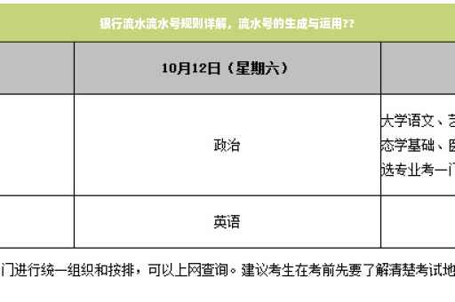 本文详细解析了银行流水的流水号规则,包括流水号的组成、作用、生成时机、排序方式等,也介绍了如何查询和使用银行流水以及注意事项,希望本文能帮助公众更好地了解和使用银行流水,保障金融交易的安全,维护客户权益。