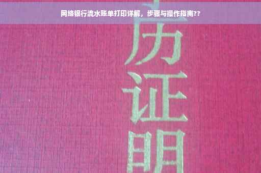 摘要:网络银行打印银行流水账单的详细步骤与操作指南。用户需先登录个人网上银行账户,进入交易明细或流水页面,选择打印时间范围及需要打印的流水账单。确认无误后,可选择在线打印或保存至手机进行打印。操作简便快捷,为用户提供便利的银行流水获取方式。