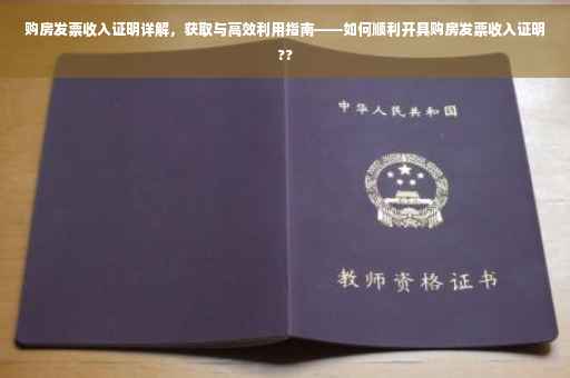 摘要:购房发票收入证明是购房过程中的重要文件,获取并有效利用对于购房者来说至关重要。本文将详细介绍如何顺利获取购房发票收入证明,包括开具流程、所需材料以及注意事项。阅读本文后,您将了解如何利用购房发票收入证明,确保购房过程的顺利进行。