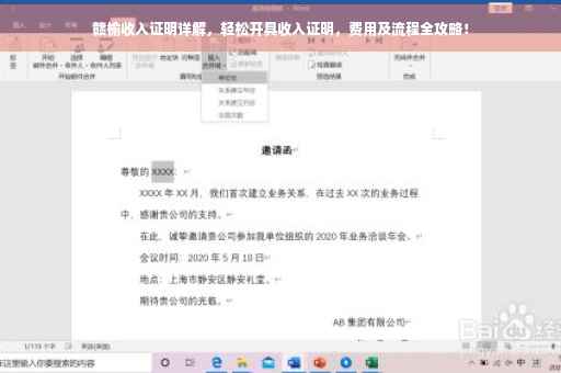 摘要:本文将详细介绍赣榆收入证明的开具流程和注意事项,包括如何顺利获取收入证明以及所需费用。文章将指导读者了解收入证明的重要性,并解释如何准备相关材料,以便顺利开具收入证明。还将提供关于开具收入证明所需费用的相关信息,以帮助读者做好预算和准备。