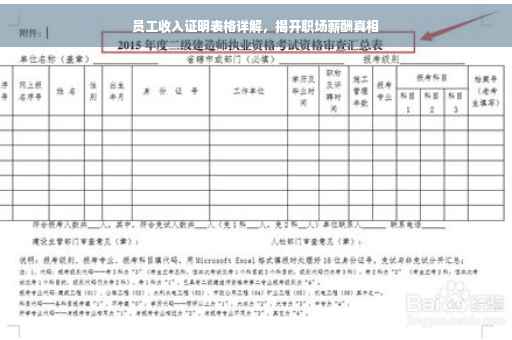 随着经济的发展和就业市场的繁荣,员工收入问题逐渐受到广泛关注,作为向员工提供重要证明文件的企业,员工收入证明表格不仅关乎员工的个人经济利益,更是社会信用体系建设的重要组成部分,本文将详细介绍员工收入证明表格的相关内容,帮助大家揭开职场薪酬真相的神秘面纱。