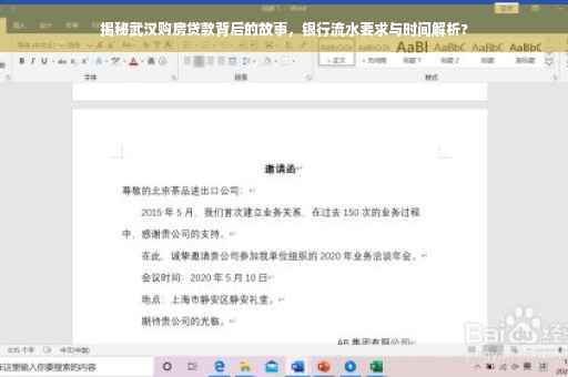 摘要:本文将探讨武汉购房银行流水的重要性,揭示购房贷款背后的真实故事。文章将介绍武汉购房银行流水的要求和流程,以及购房者在准备银行流水时需要注意的事项。本文还将解答武汉购房银行流水需要多长时间的问题,帮助购房者更好地了解和准备相关材料,顺利获得购房贷款。