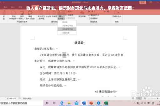 在当今社会,个人财务管理和理财规划日益受到重视,作为展示个人财务状况的关键工具之一,收入资产证明表不仅帮助我们清晰地了解自身的收入和资产状况,还为财务规划提供了有力的支持,本文将深入解析收入资产证明表的重要性,并详细指导您如何制作一份完整的收入资产证明表,同时探讨如何利用它进行财务规划。