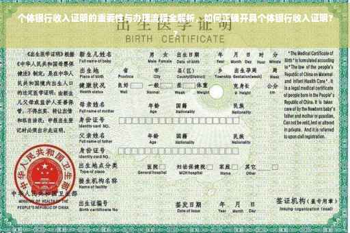 在当今社会,随着经济的繁荣和个人财富的积累,越来越多的人选择自主创业或从事自由职业,在这个过程中,个体银行收入证明成为了许多重要事务的必备材料,本文将详细介绍个体银行收入证明的重要性以及办理流程,帮助广大个体经营者顺利办理相关手续,保障自身权益。