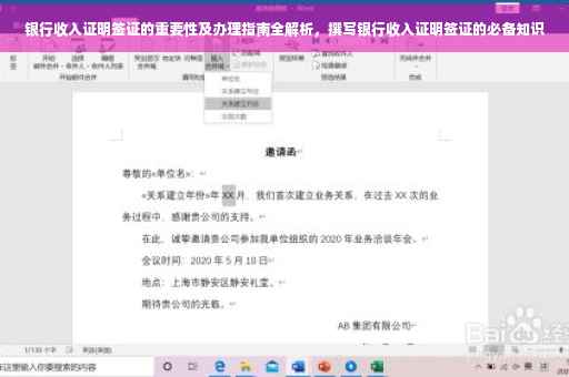 摘要:银行收入证明签证在办理签证过程中具有重要地位,能够证明申请人的经济能力和资金来源。办理银行收入证明签证需遵循一定指南,包括准备相关材料、填写申请表格、提交至指定机构等步骤。本文旨在介绍银行收入证明签证的重要性及办理方法,帮助申请人正确撰写银行收入证明签证,顺利获得签证。