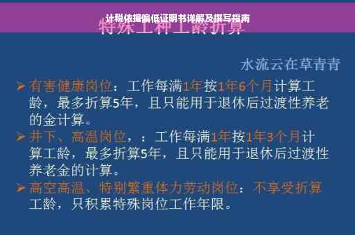 摘要:,,本文详细解释了计税依据偏低的证明书相关内容。文章介绍了计税依据偏低的概念及其在实际税务操作中的重要性。本文还提供了编写计税依据偏低证明书的步骤和要点,包括证明书的格式、内容、必要信息以及注意事项等。帮助读者了解如何正确撰写计税依据偏低证明书,确保税务处理的准确性和合法性。