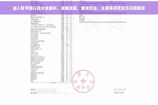 随着国际化教育的普及,越来越多的成年人选择出国留学深造,在申请留学的过程中,银行流水作为财务证明的重要部分,是申请签证和院校时不可或缺的材料,本文将详细介绍成人留学银行流水的准备流程、注意事项,并解答留学生在准备过程中可能遇到的常见问题,帮助大家顺利完成留学申请。