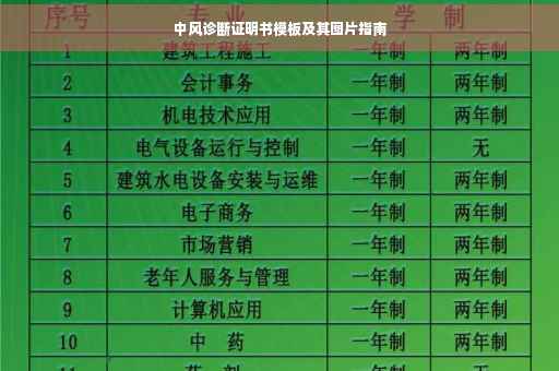 摘要:,,本文介绍了一份中风诊断证明书模板,包括图片链接。通过该模板,医生可以简洁明了地记录患者的中风诊断信息,包括患者的基本信息、诊断时间、症状表现、检查结果和治疗建议等。该模板的使用有助于规范医疗记录,提高诊断效率,为患者提供更好的医疗服务。