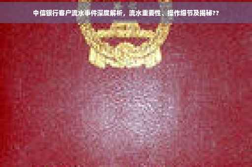在当今金融领域,银行业务与我们生活息息相关,银行流水作为个人和企业财务的重要体现,备受关注,中信银行作为国内领先的金融机构之一,其客户流水情况更是备受瞩目,本文将深入探讨中信银行客户流水的相关内容,帮助大家更好地了解银行流水的重要性及操作细节。