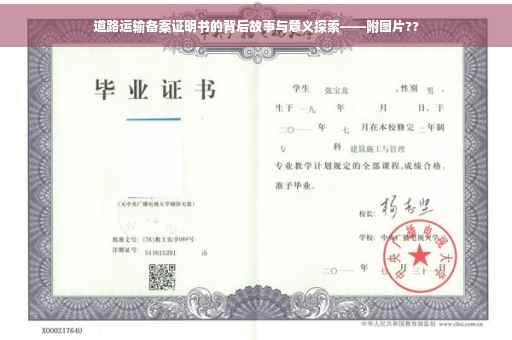 摘要:道路运输备案证明书是道路运输行业的重要文件,背后蕴含着严格的监管和合规故事。本文探讨了备案证明书的含义、作用,通过图片展示其外观和重要性。这份证明书的存在确保了道路运输行业的规范运营,保障了公众的安全出行。