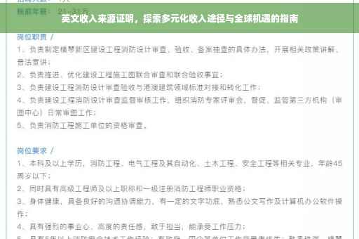随着全球化的不断推进和互联网的普及,越来越多的人开始追求多元化的收入来源,尤其是在英文能力较强的人群中,本文将探讨英文收入来源的多样性,以及如何证明这些收入,帮助读者在全球经济舞台上开拓更广阔的发展空间。