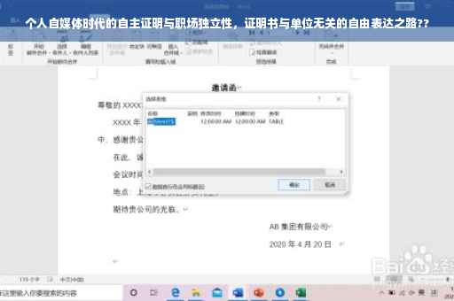 随着互联网的普及和自媒体时代的到来,越来越多的人开始投身于自媒体行业,追求个人发展与表达的自由,在这个时代背景下,一种观念逐渐兴起:证明书与单位无关,越来越多的人开始重视个人能力的自主证明,而非仅仅依赖单位给予的职务或证明来定义自己的价值,本文将就此现象展开探讨,分析个人自媒体时代的自主证明与职场独立性的重要性。