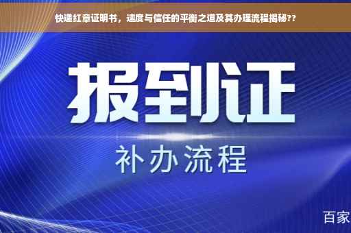 在快递行业中,速度和信任是两个至关重要的因素,快递公司需要在保证速度的同时,建立起客户的信任,快递红章证明书正是实现这种平衡的关键。