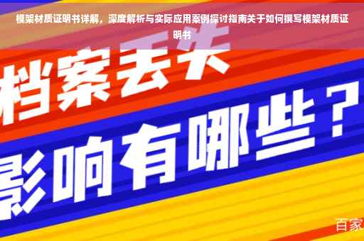 摘要:本文将详细介绍模架材质证明书的内容,包括其格式、必要信息和要求。通过深度解析模架材质证明书的实际应用案例,探讨其在实际生产和工程中的重要性。本文将指导读者如何正确书写模架材质证明书,以确保其准确性和有效性。摘要字数在100-200字之间。