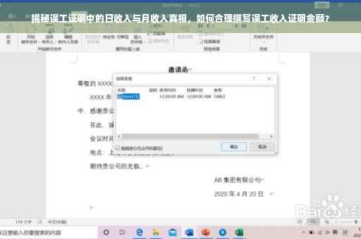 摘要:本文将探讨误工证明中的日收入和月收入真相,分析如何合理填写误工收入证明。文章指出,填写误工收入证明时应根据实际情况,结合个人或企业的收入状况进行合理填写,避免虚报或夸大收入情况。本文将提供一些建议,帮助读者更好地了解如何撰写误工证明,以确保其真实性和有效性。